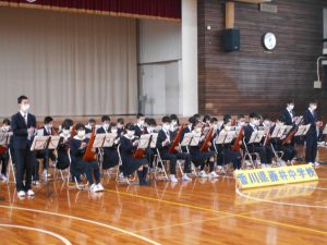 中学3年生の各クラスがプサルターと鈴のコラボ演奏を