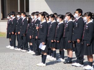 4月10日(月)に、新入生と在校生が初めて「対面」しました。少し緊張した様子でやってきた新入生に対して、初めに校長先生、次に在校生を代表して、生徒会長の岡田さんが歓迎のことばを述べました。新入生を代表し原さんから感謝のことばや中学校生活への期待や決意が語られました。対面式後、新入生が校内見学へ出発するときには、在校生からは温かい拍手が送られました。