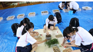 2年団は、徳島県へ行きました。技の館にて、藍染体験をしました。同じ技法で作っても、色のでかたが全く違い、世界にたった一つの作品が完成しました。
