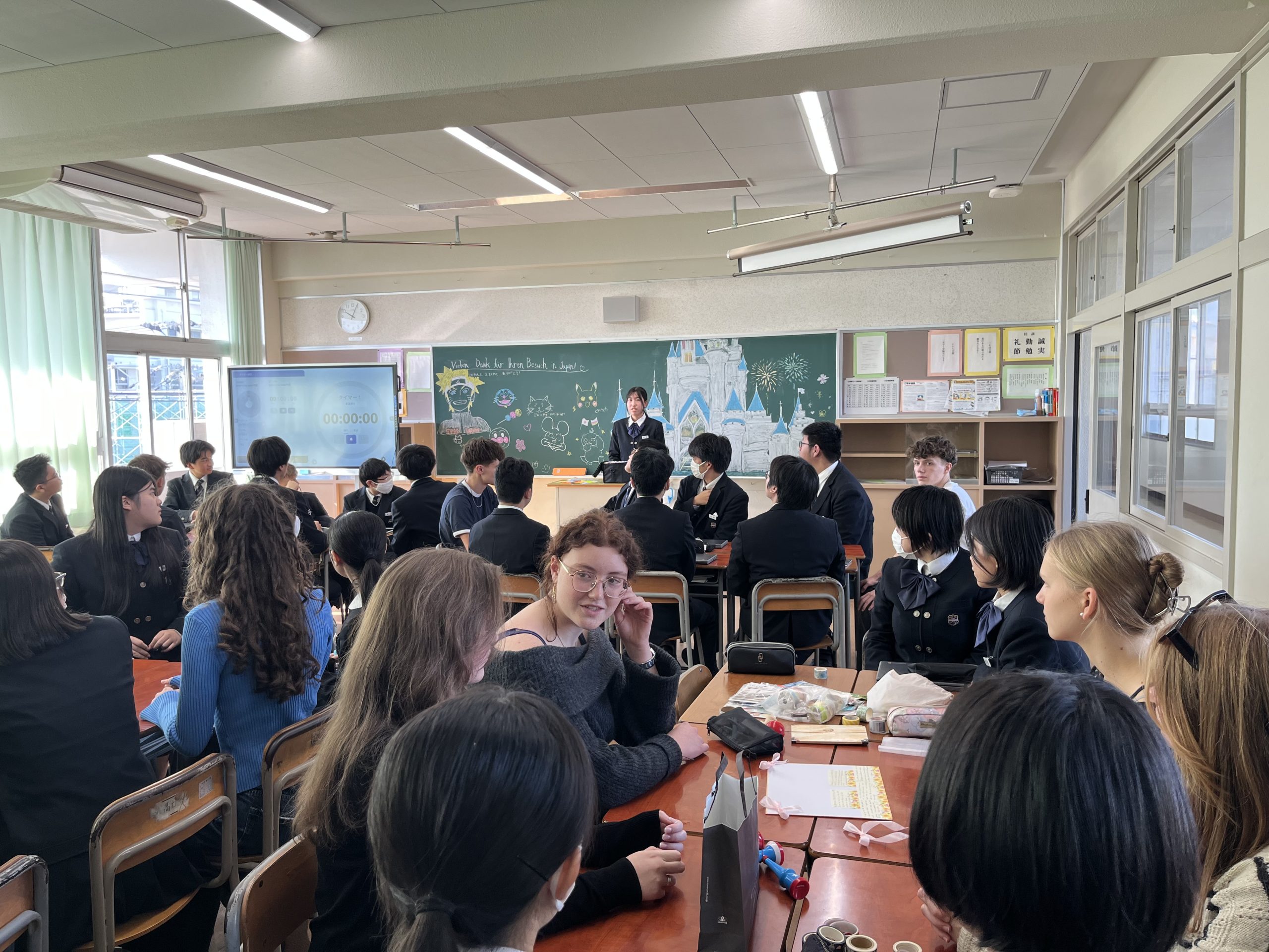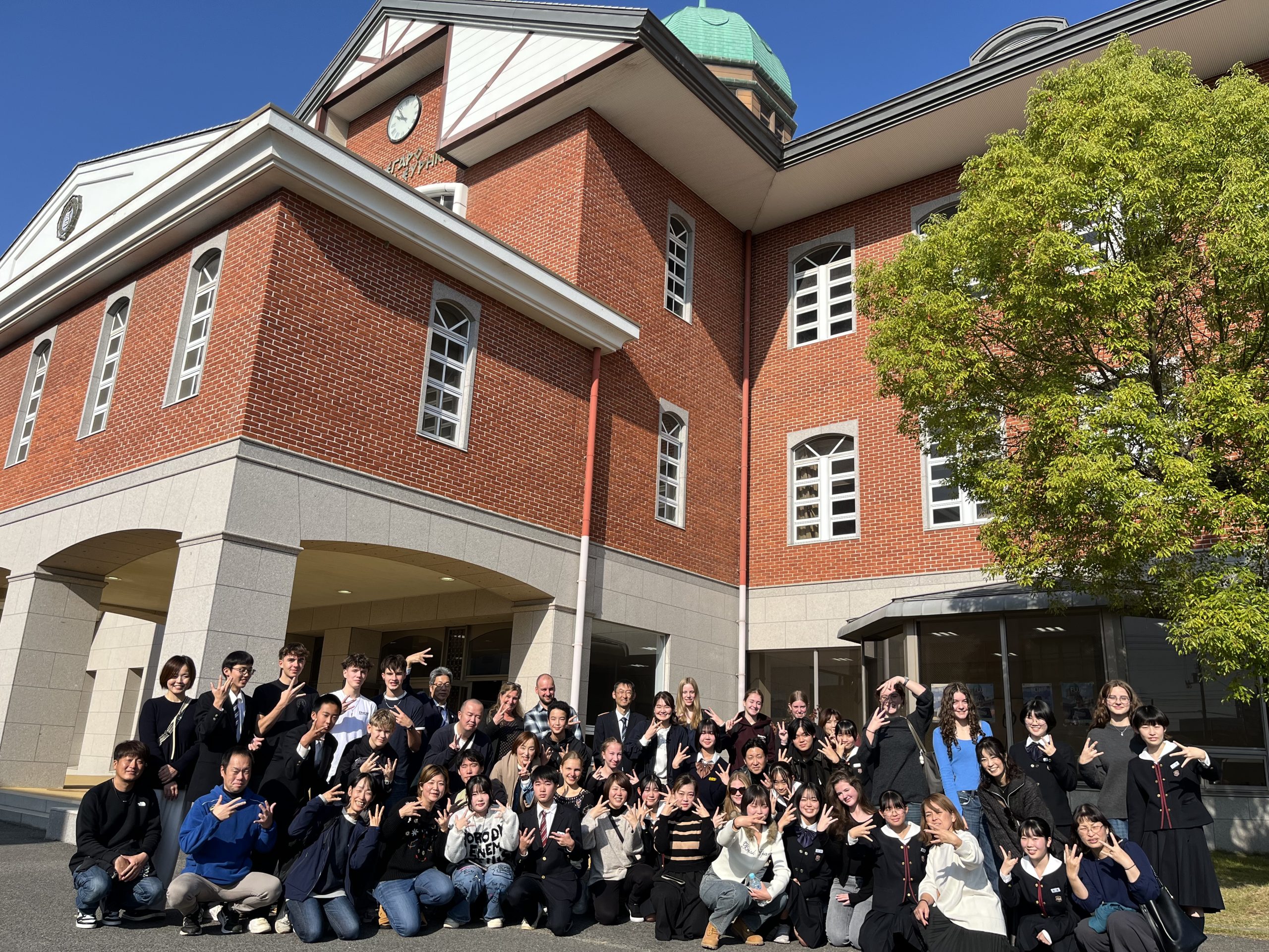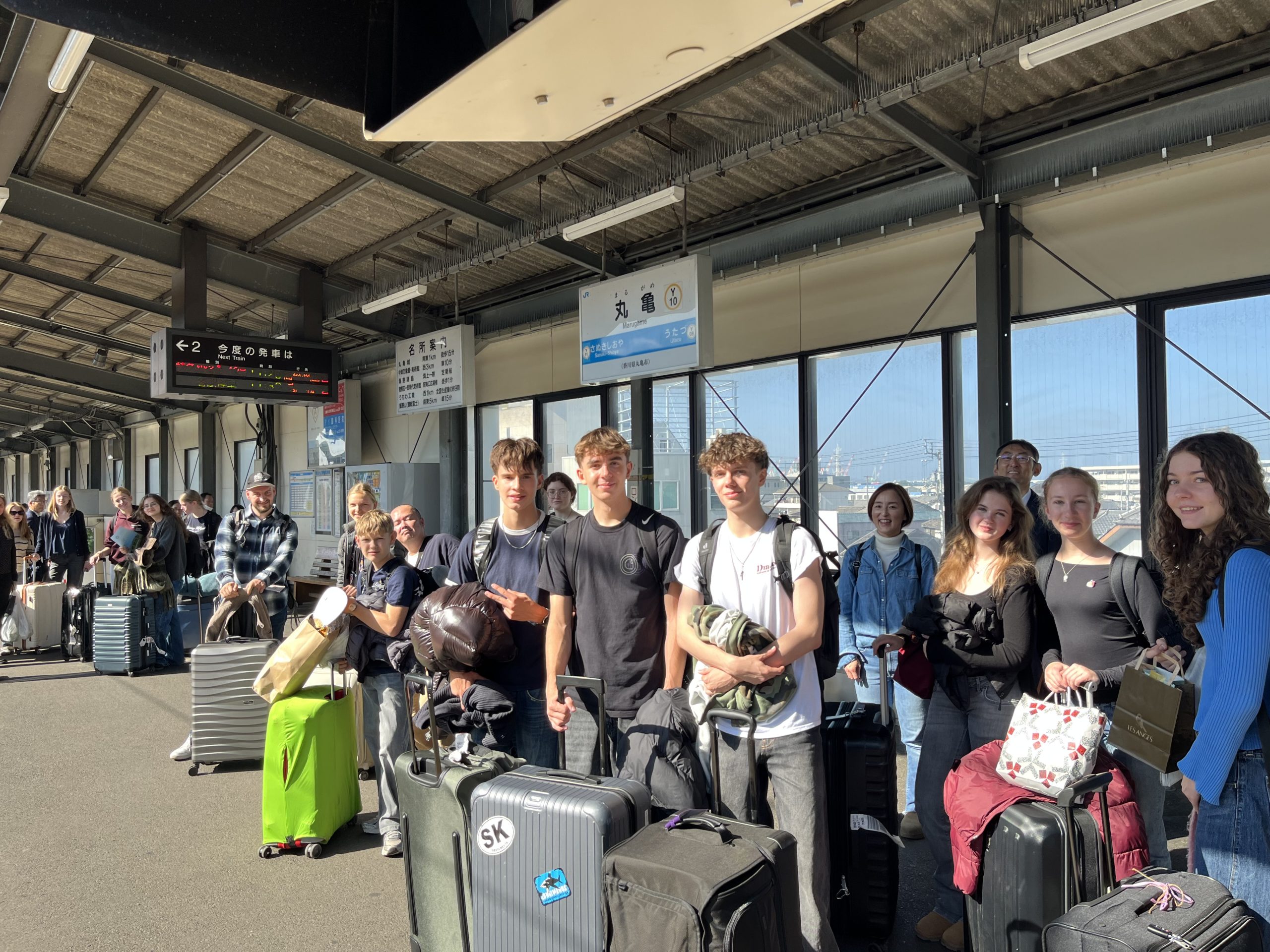 11月15日(土)、11月8日(土)より1週間ほどお迎えしていたドイツからの留学生との日々も最終日を迎えました。1限目はホストファミリーと最後の交流を行い、それぞれの家族で写真を撮るなどして別れの時を惜しんでいました。2限目はユリーカコース2年生の教室で班ごとに日本の伝統的な遊びを楽しんだり色紙にメッセージを書いたりなどして、最後の時を大切に過ごしました。最後は丸亀駅へ向かう一行を中学生全員で見送り、次回の再会を約束してお別れしました。様々な交流を経て互いにとって大変有意義な時間を過ごせました。次は我々がドイツへと訪れる番です!
