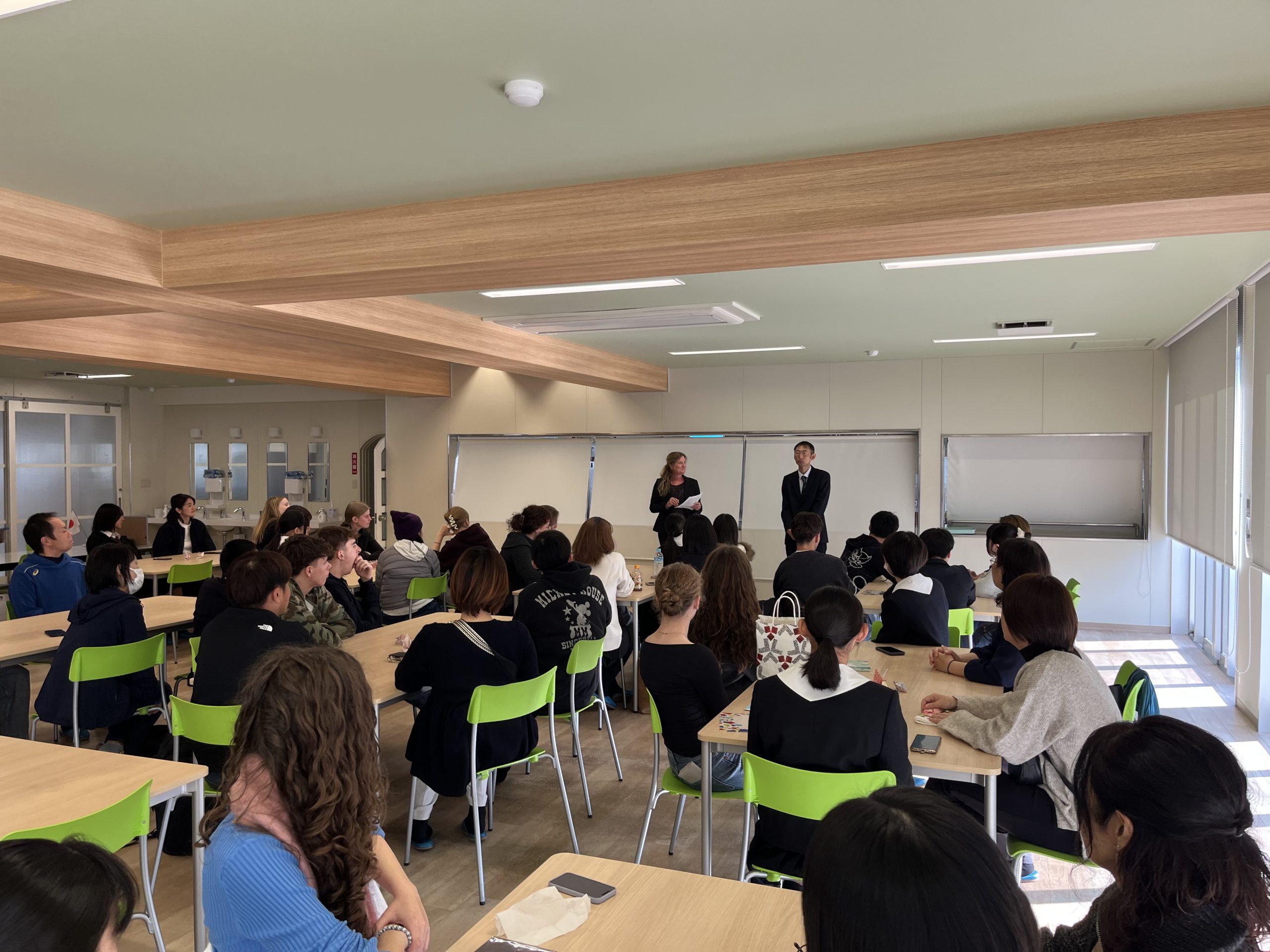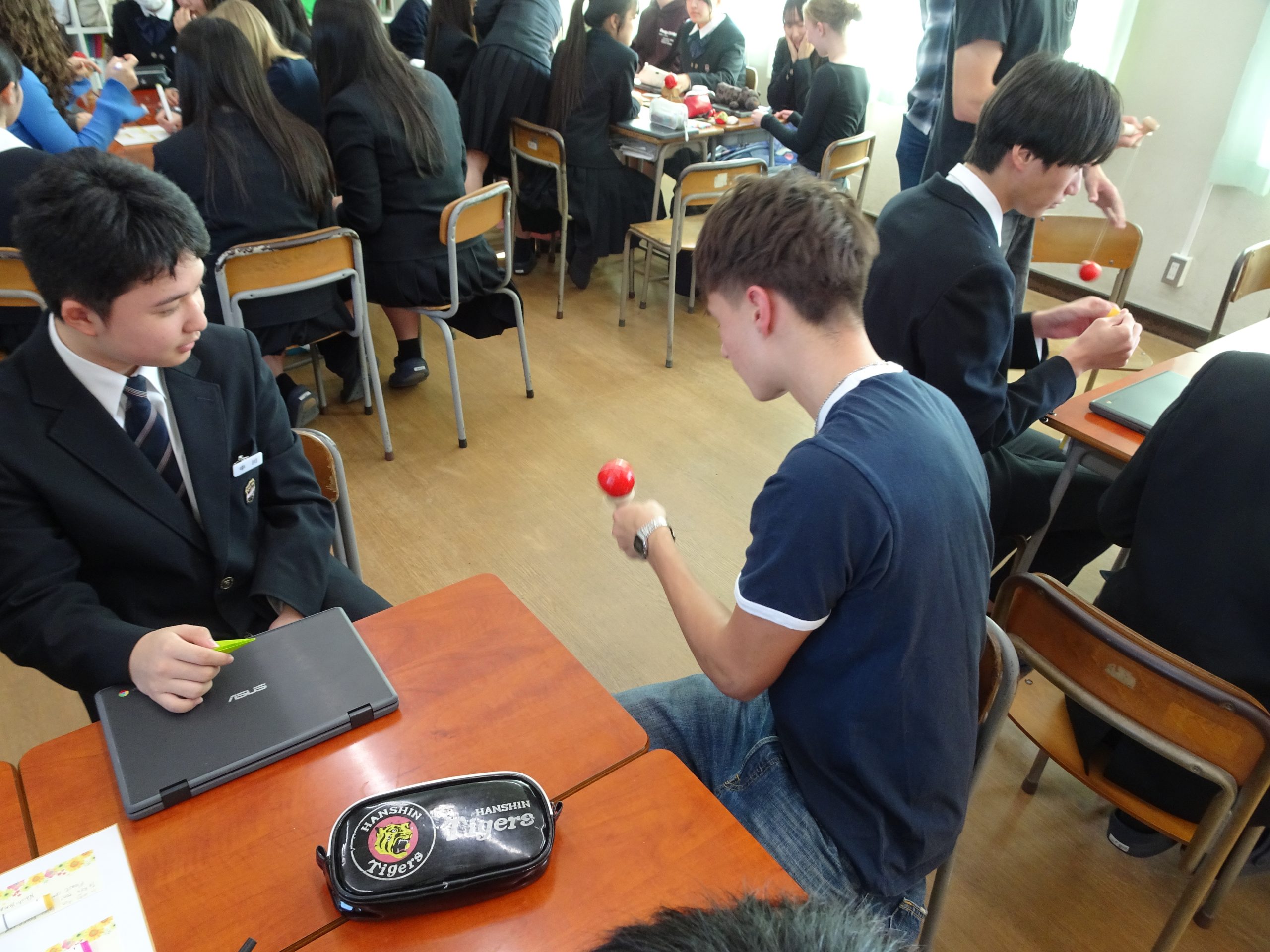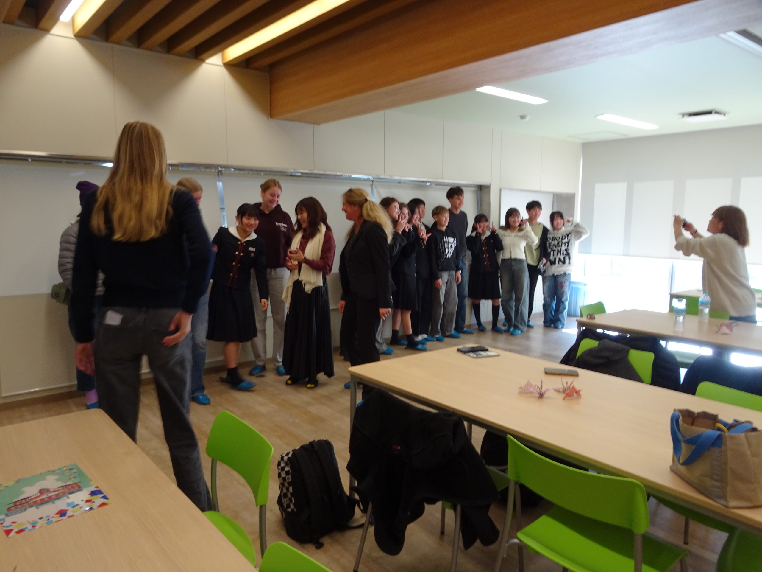 11月15日(土)、11月8日(土)より1週間ほどお迎えしていたドイツからの留学生との日々も最終日を迎えました。1限目はホストファミリーと最後の交流を行い、それぞれの家族で写真を撮るなどして別れの時を惜しんでいました。2限目はユリーカコース2年生の教室で班ごとに日本の伝統的な遊びを楽しんだり色紙にメッセージを書いたりなどして、最後の時を大切に過ごしました。最後は丸亀駅へ向かう一行を中学生全員で見送り、次回の再会を約束してお別れしました。様々な交流を経て互いにとって大変有意義な時間を過ごせました。次は我々がドイツへと訪れる番です!