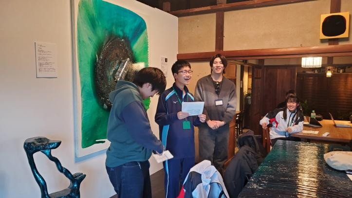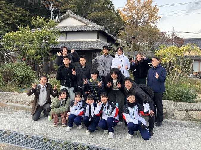 香川大学企業部の大学生が企画する塩飽諸島魅力活性化プロジェクトに、社会科同好会の部員が参加しました。本校の高校生や地域の学生も参加しており、みんなで本島に行き、良い交流の機会となりました。レンタサイクルを借りて、島を周りながら、島の魅力を探っていきました。島ガイドをしてくださっている方々のお話を聞き、過疎や空き家の問題に加え、文化財として残さなければならない家屋、島民の方との関係性など色々と考えさせられる課題があることを知りました。その後、空き家を見て回り、大学生と高校生、そして中学生の混合グループで課題解決に向けて何ができるかを話し合い、企画して、コスモ不動産の社長さんにプレゼンをしました。普段の授業では経験できない活動を行い、本当に良い機会となったと思います。次回の活動も楽しみです。
