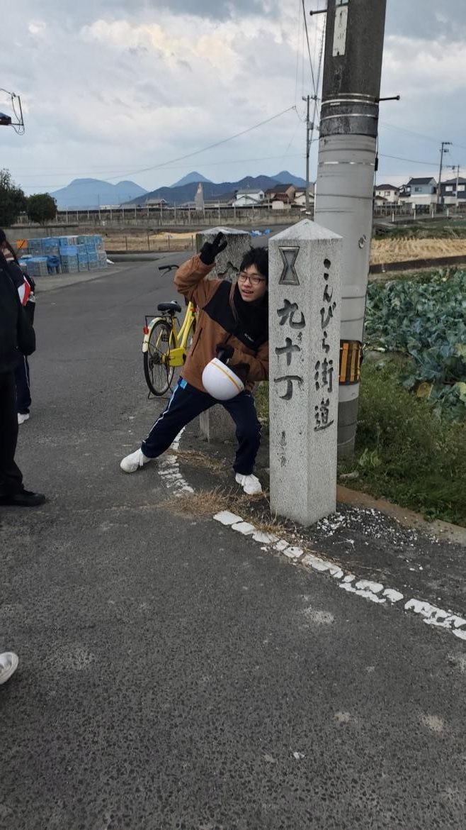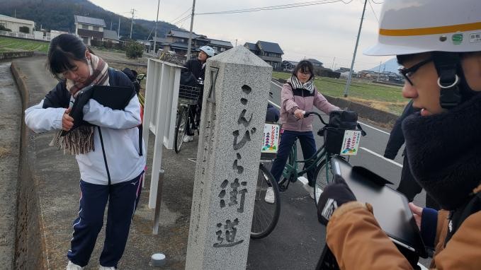 1月24日(土)の午後から善通寺の燈籠めぐりを行いました。丸亀駅から善通寺駅まで移動し、レンタサイクルを借りて出発しました。初めに、前回の最終地点の燈籠からスタートしました。強い風と寒さでしたが、部員はみんな元気そうでした。最後はへとへとになっていましたが、とてもいい経験になりました。前回と同様、燈籠をめぐる際に、近くにある神社に寄りながら歴史的なつながりや移設された燈籠がないかなど確認しながら進んでいきました。燈籠めぐりを通して、前回まで気にもしていなかった燈籠のデザインに注目する部員もでてきており、有意義な時間となりました。次回は、3月に琴平に行く予定です。その前に振り返りの会を開きます。燈籠めぐりをどのように形にしていくのか考えていきたいと思います。
