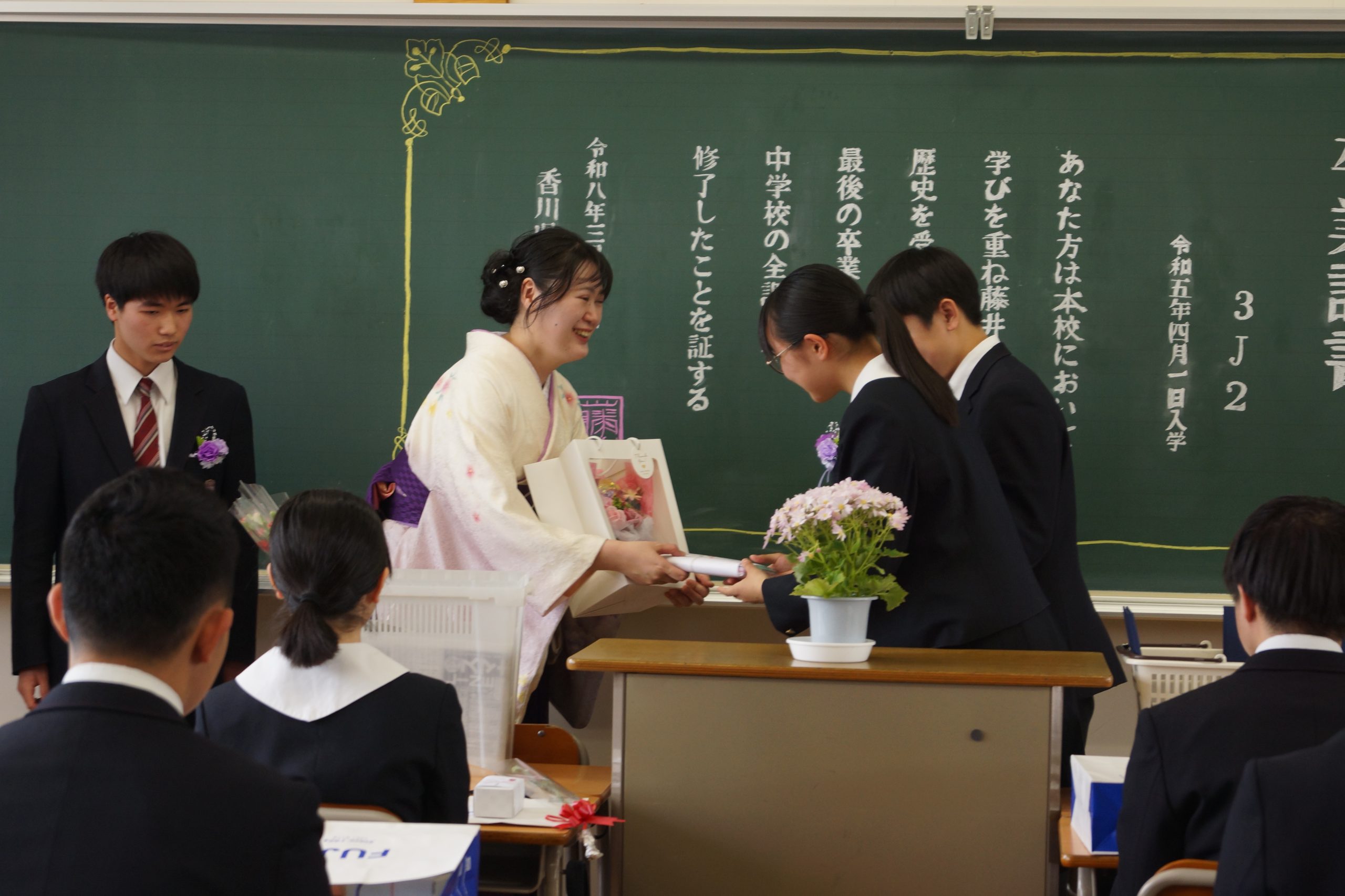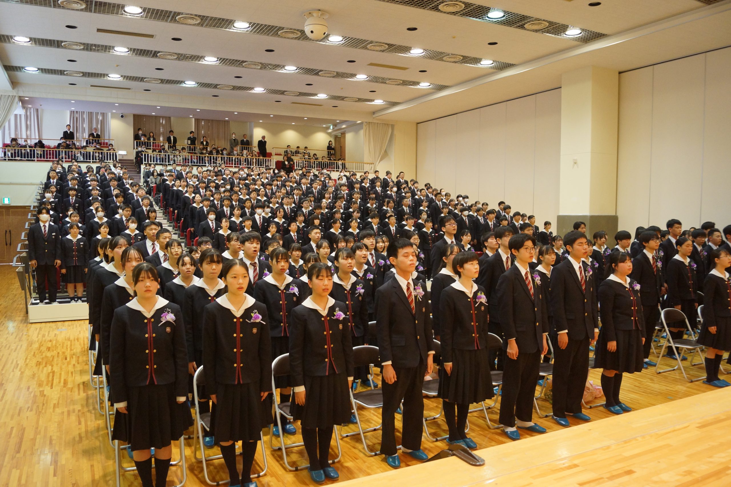 式の後半では、全校生徒で「仰げば尊し」、「校歌」を合唱しました。学び舎に対する感謝が伝わる、素晴らしい歌声でした。