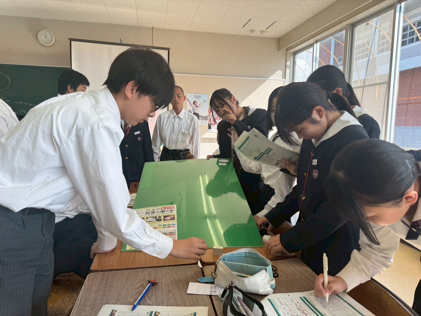 人気アニメを使った楽しい授業で、生徒達は興味を持って聞いていました。内容はレベルが高く、生徒達も緊張した表情でしたが、次第に積極的に発言するようになり、生徒達の成長が感じられる50分間でした。中には難しい問題に果敢に挑戦する生徒もおり、藤田先生に褒められて嬉しそうでした。この授業で学んだことを明日からも活かして行ってくれると思います。