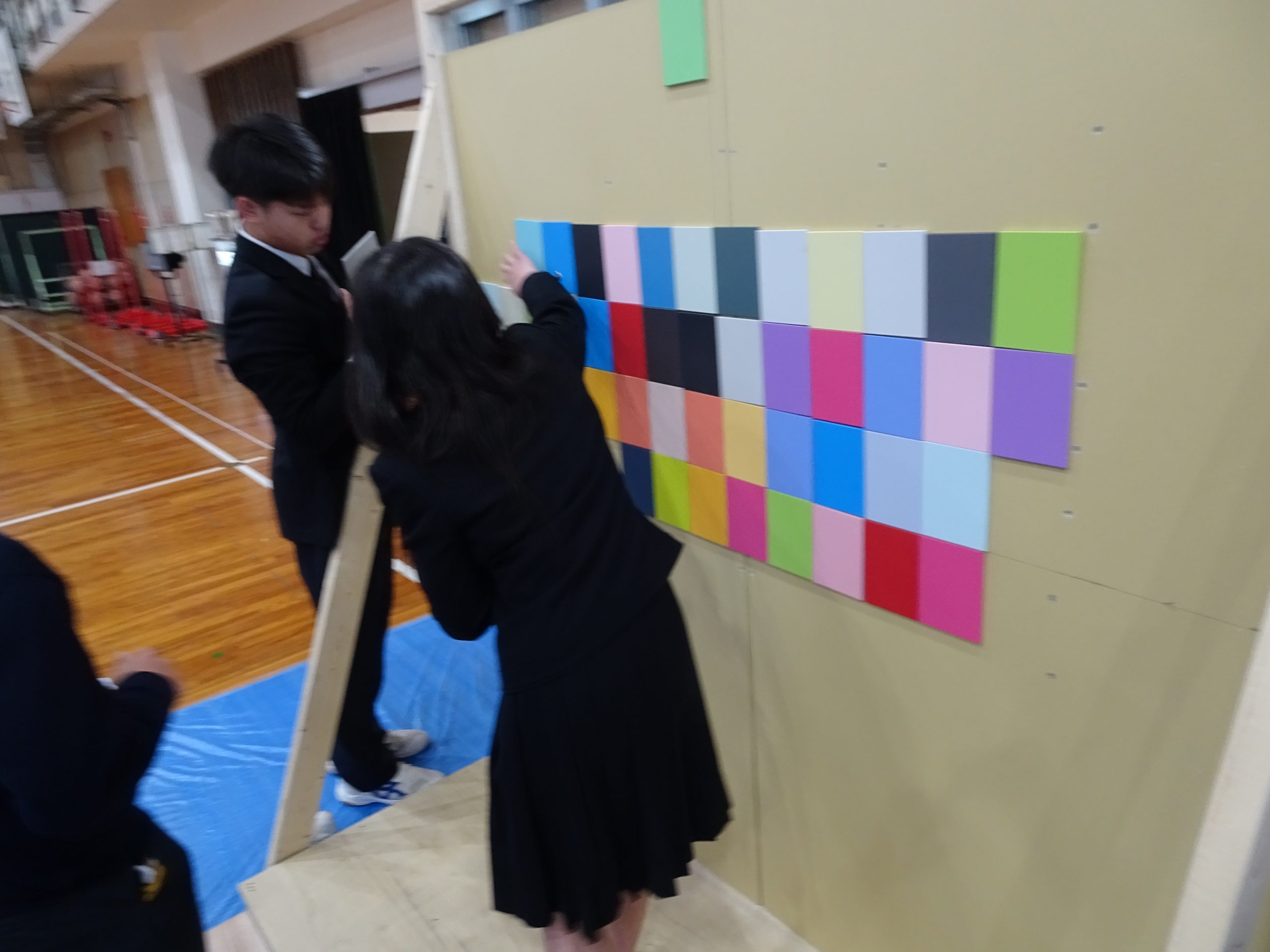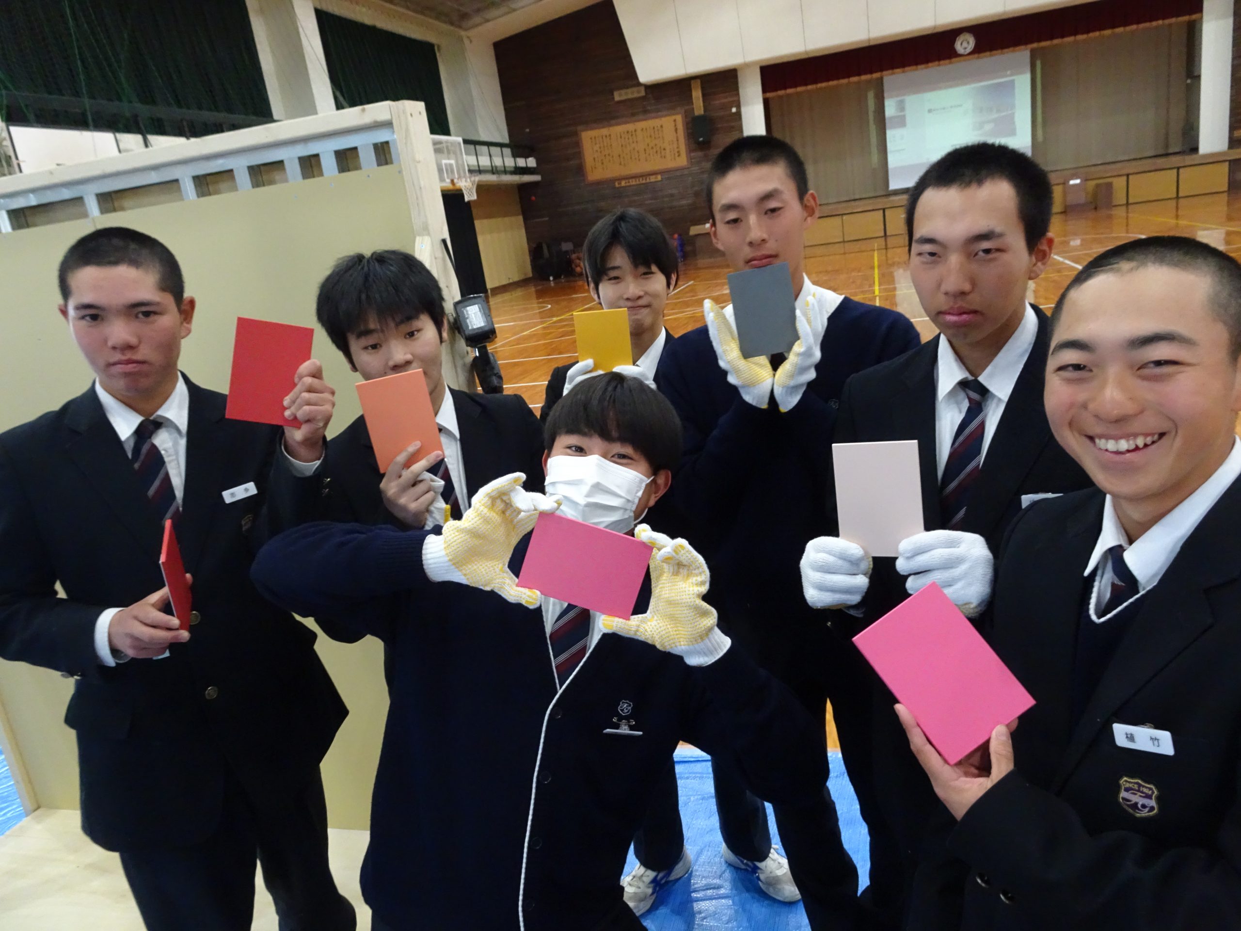 仕上げの化粧板を貼る工程では、どの班も楽しそうに作業に取り組み、個性あふれる作品が完成しました。実際の仕事を体験することで、ものづくりの面白さや達成感を味わうことができたようです。